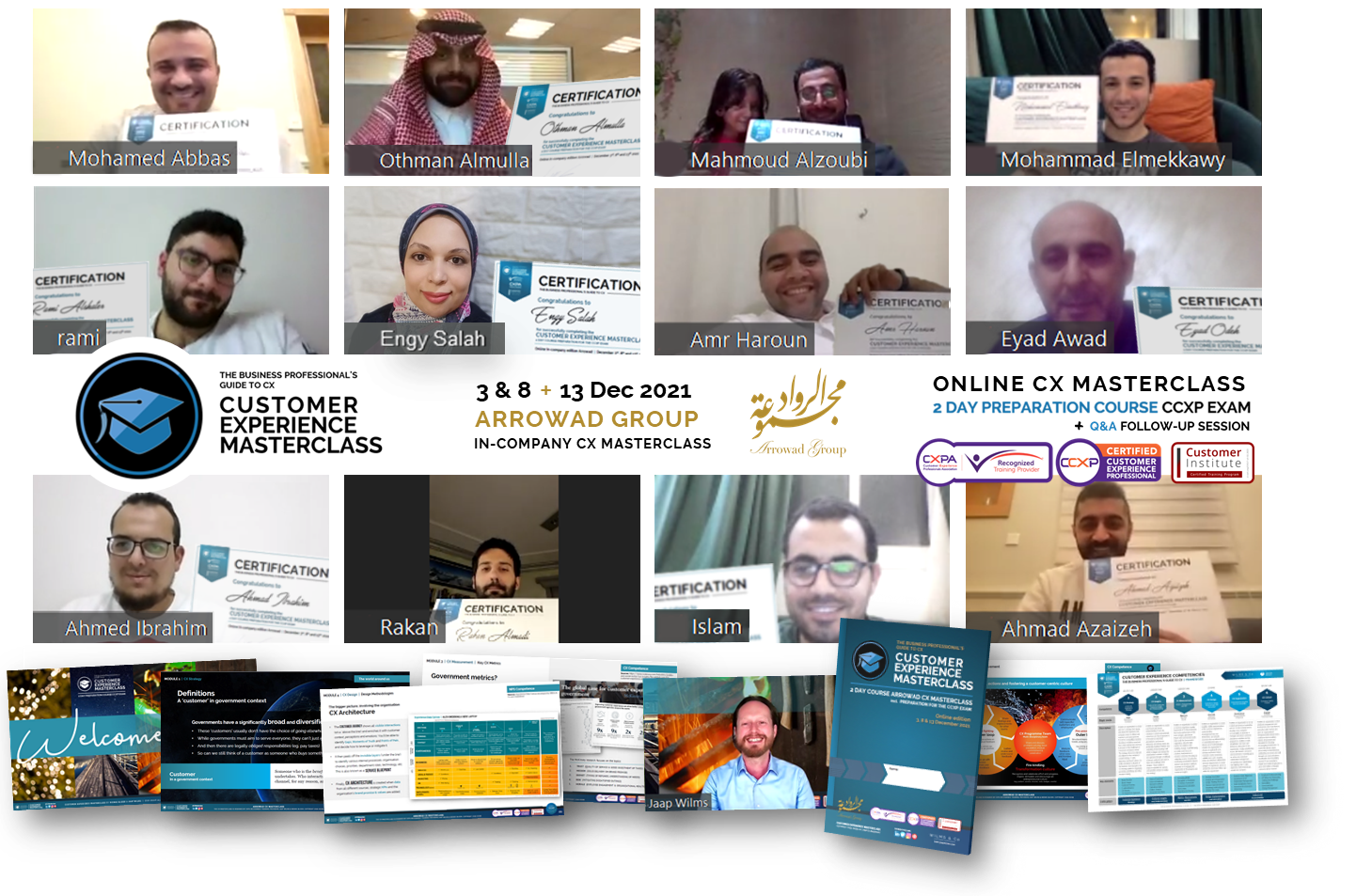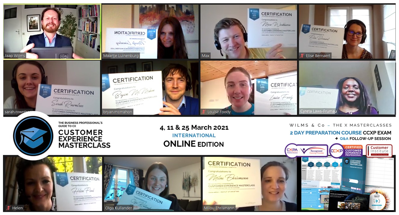 Enrol in this CX Masterclass endorsed by the CXPA. There are only a few official CXPA trainers in the world (the so-called RTPs: Recognised Training Providers) to optimally prepare you for the official CCXP Exam. This Masterclass gives you all you need, from the comfort of home. That’s not all. Besides the CXPA curriculum get ready for real-life corporate expertise, anecdotes, challenges, surprising views and more. You’re in for a treat!