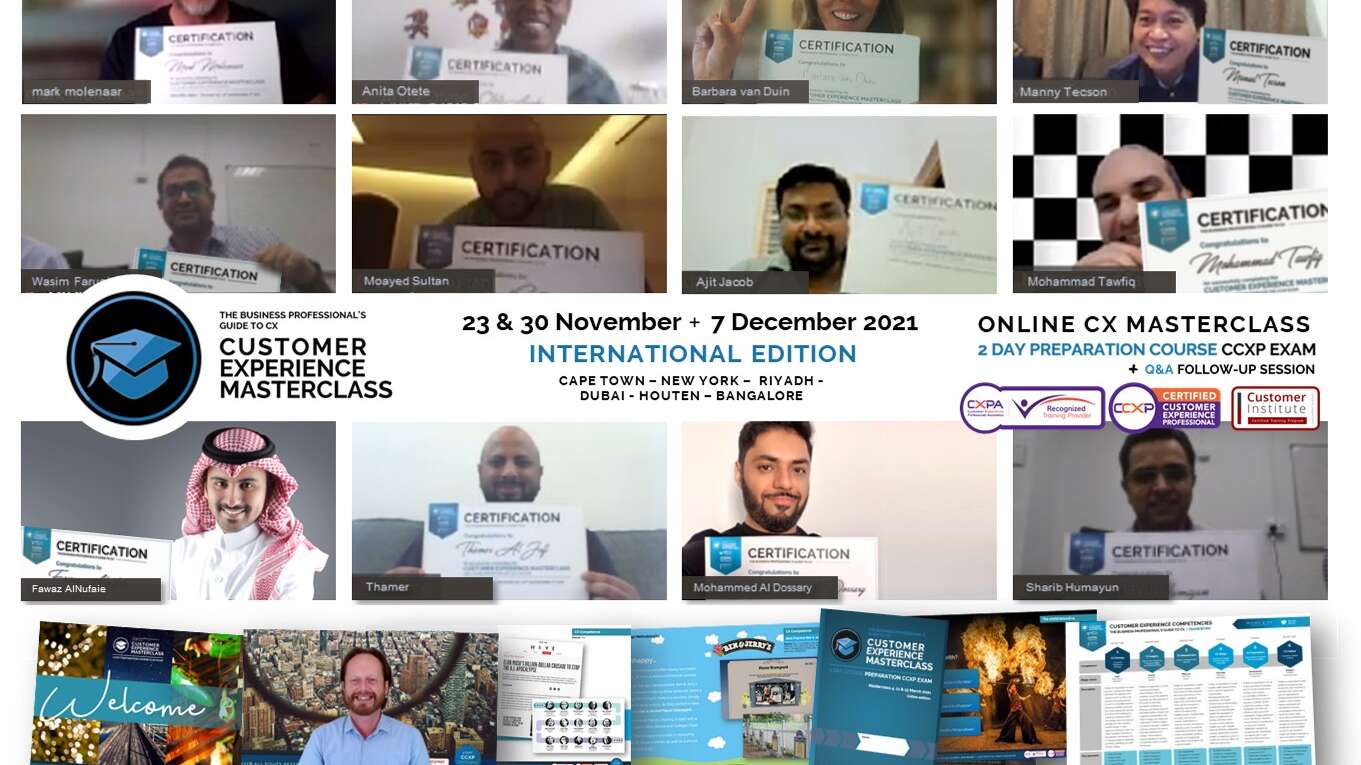 Enrol in this CX Masterclass endorsed by the CXPA. There are only a few official CXPA trainers in the world (the so-called RTPs: Recognised Training Providers) to optimally prepare you for the official CCXP Exam. This Masterclass gives you all you need, from the comfort of home. That’s not all. Besides the CXPA curriculum get ready for real-life corporate expertise, anecdotes, challenges, surprising views and more. You’re in for a treat!
